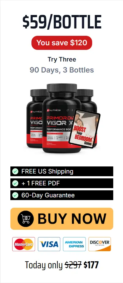 The secret behind Primordial Vigor X lies in its advanced formula, packed with clinically proven compounds that restore your virility and boost performance.